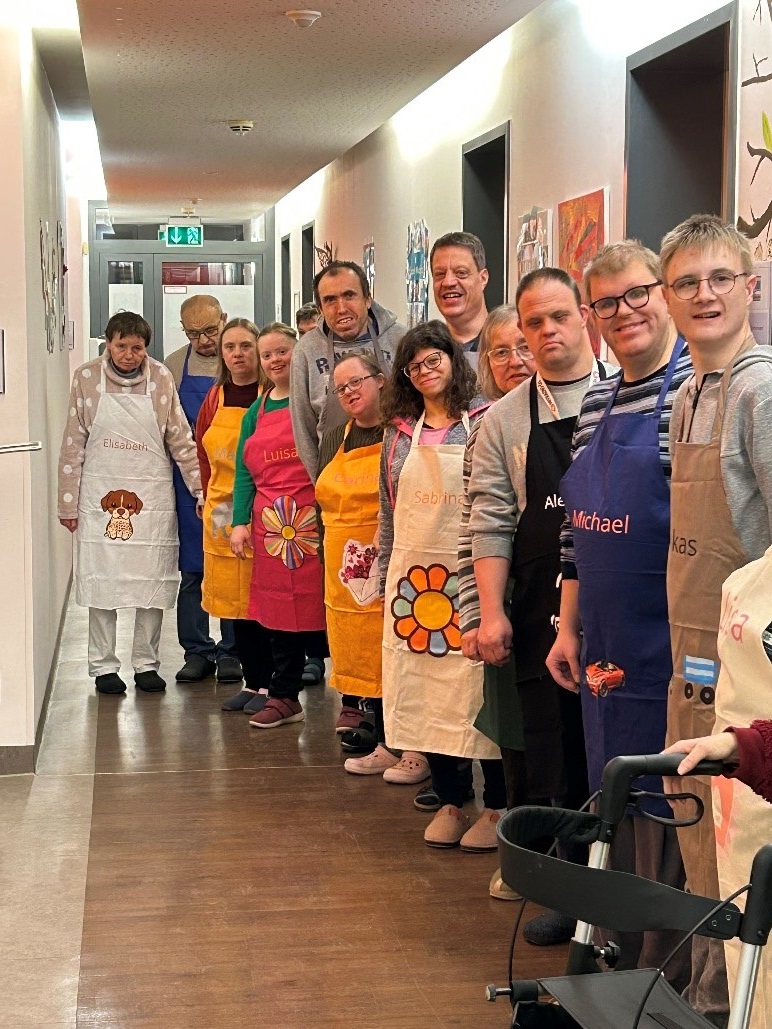 Kurz nach Weihnachten durften sich 19 Bewohner und Bewohnerinnen aus dem Flutgrabenweg über ein ganz besonderes Geschenk freuen. Gappa Monika, eine Mitarbeiterin aus der Wohngruppe, hatte für sie individuelle Kochschürzen gestaltet, die sie bei gemeinsamen Koch- und Backaktionen tragen können.